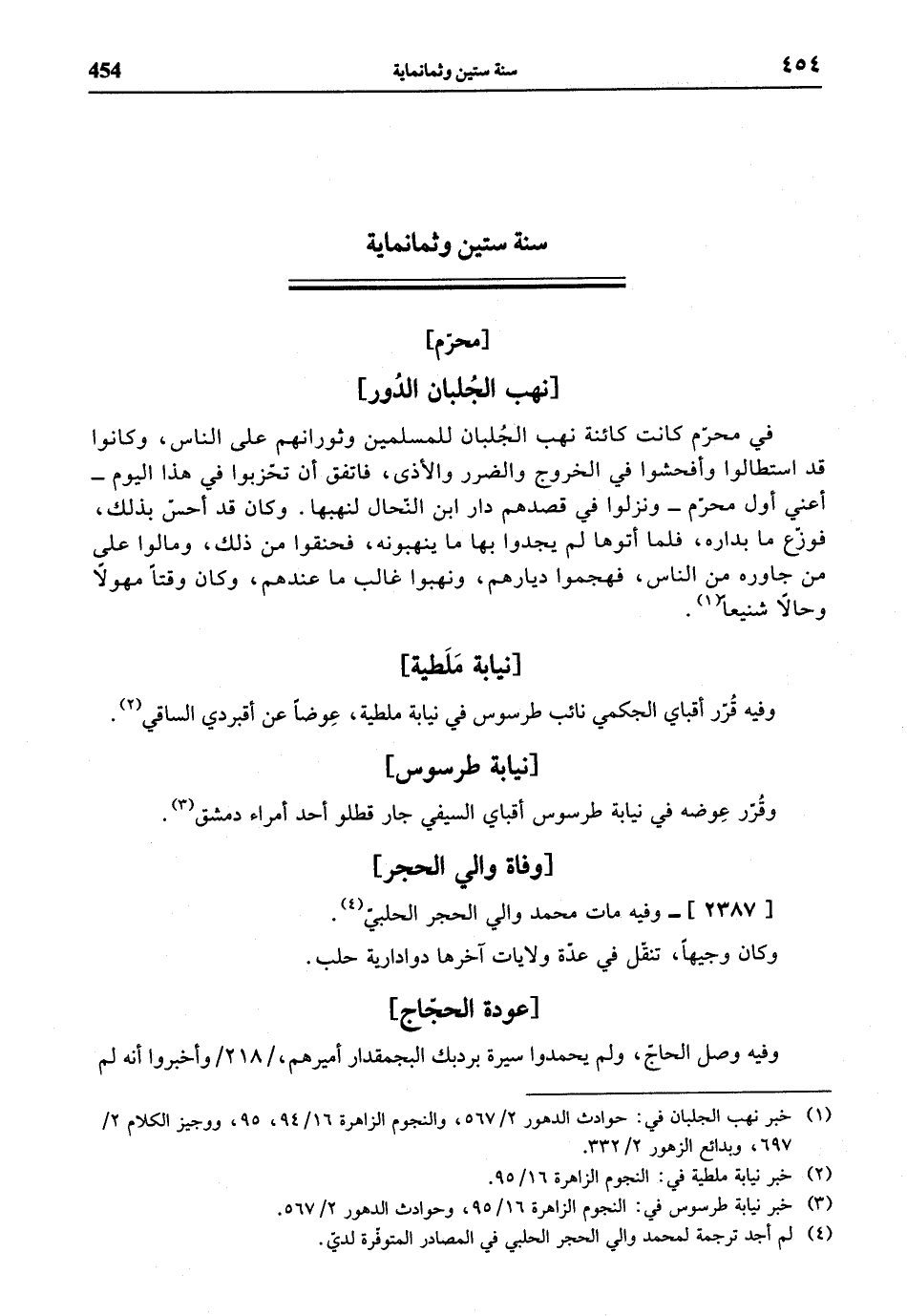 (¬3) خبر نيابة طرسوس في: النجوم الزاهرة 16/ 95، وحوادث الدهور 2/ 567.