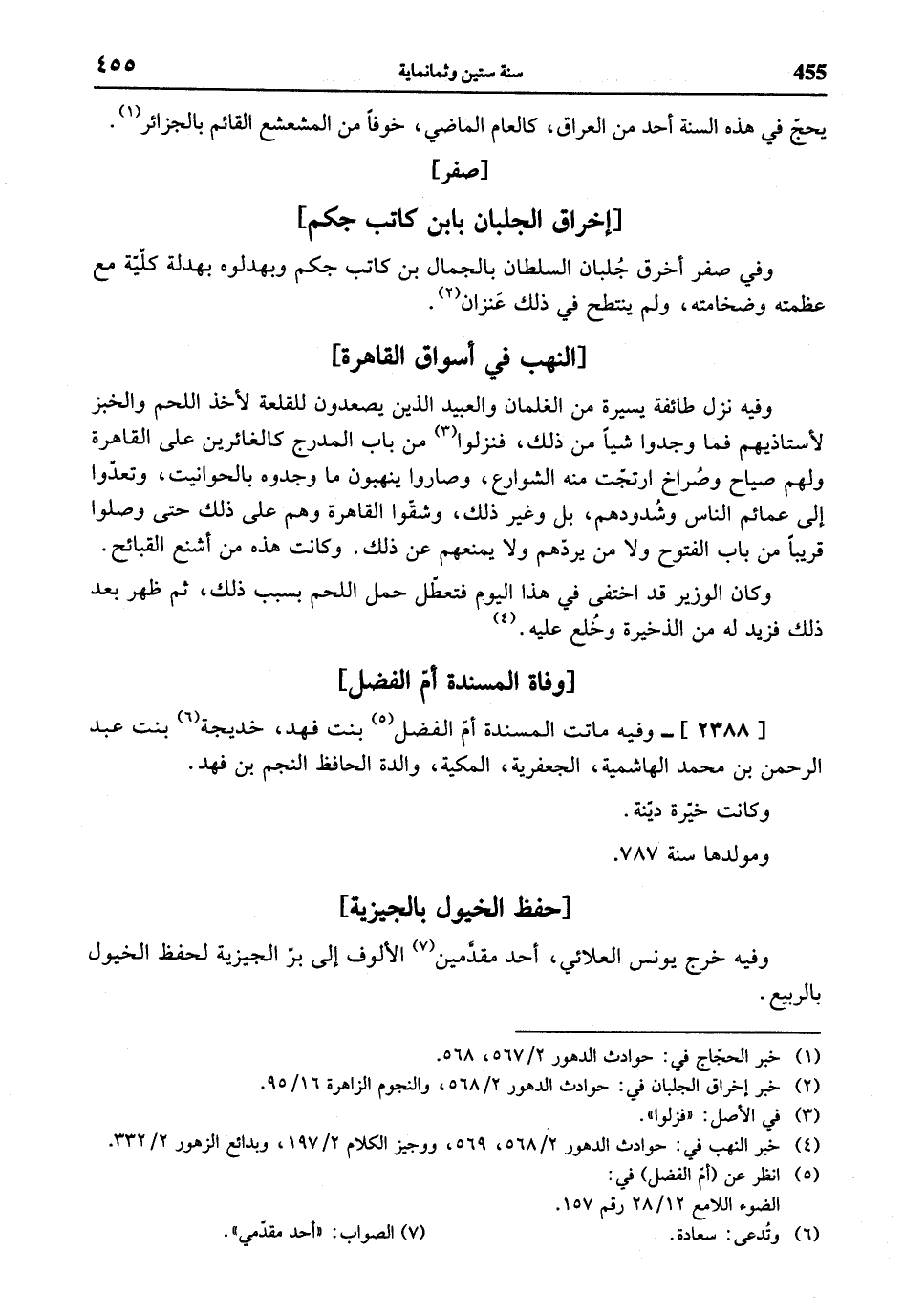 (¬4) خبر النهب في: حوادث الدهور 2/ 568، 569، ووجيز الكلام 2/ 197، وبدائع الزهور 2/ 332.