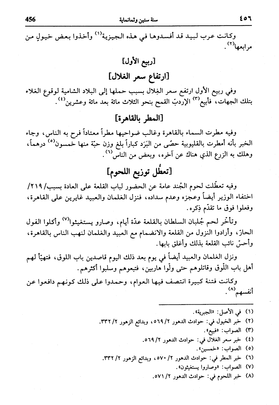 (¬8) خبر اللحوم في: حوادث الدهور 2/ 571.
