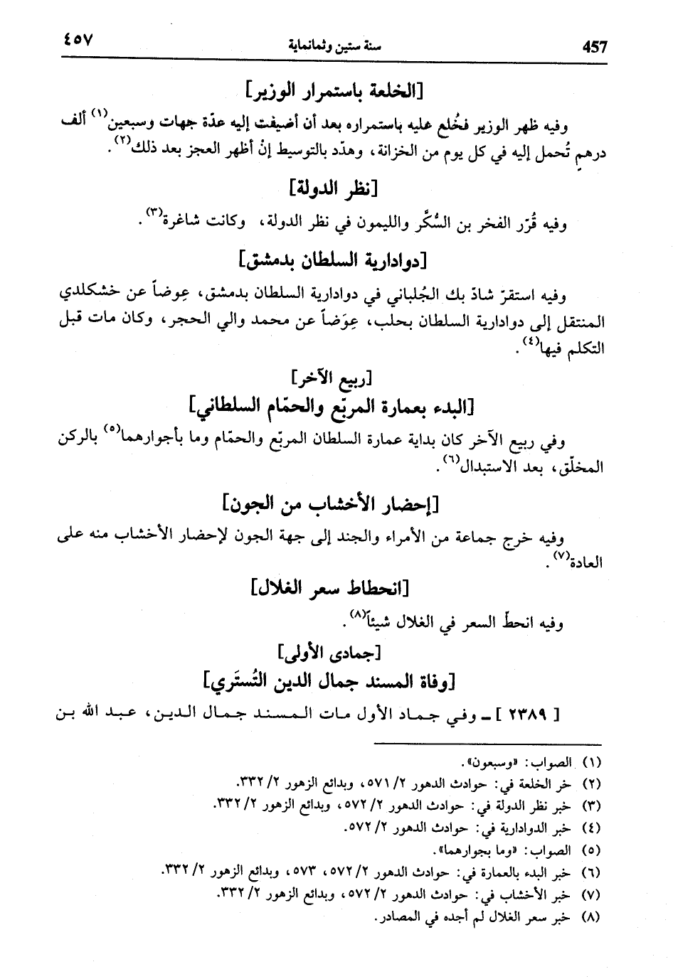 (¬4) خبر الدوادارية في: حوادث الدهور 2/ 572.