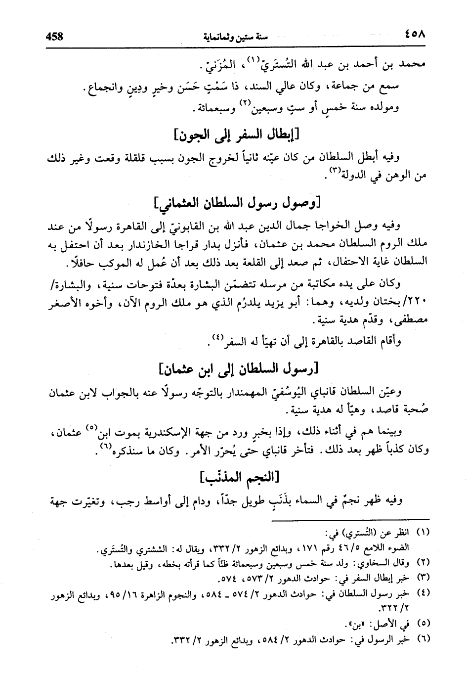 (¬1) انظر عن (التستري) في: الضوء اللامع 5/ 46 رقم 171، وبدائع الزهور 2/ 332، ويقال له: الششتري والتستري.