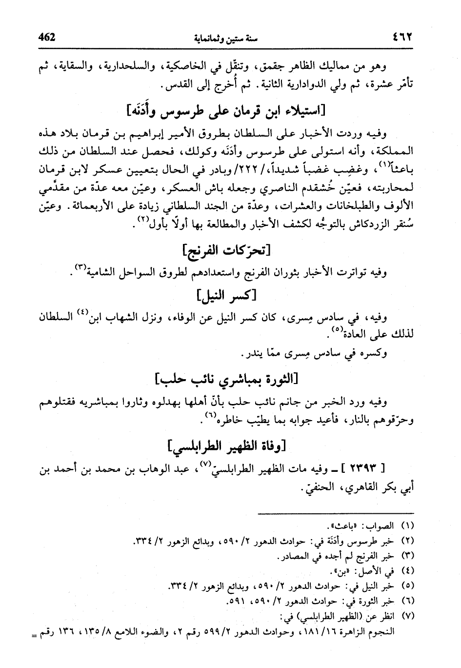 (¬2) خبر طرسوس وأدنة في: حوادث الدهور 2/ 590، وبدائع الزهور 2/ 334.