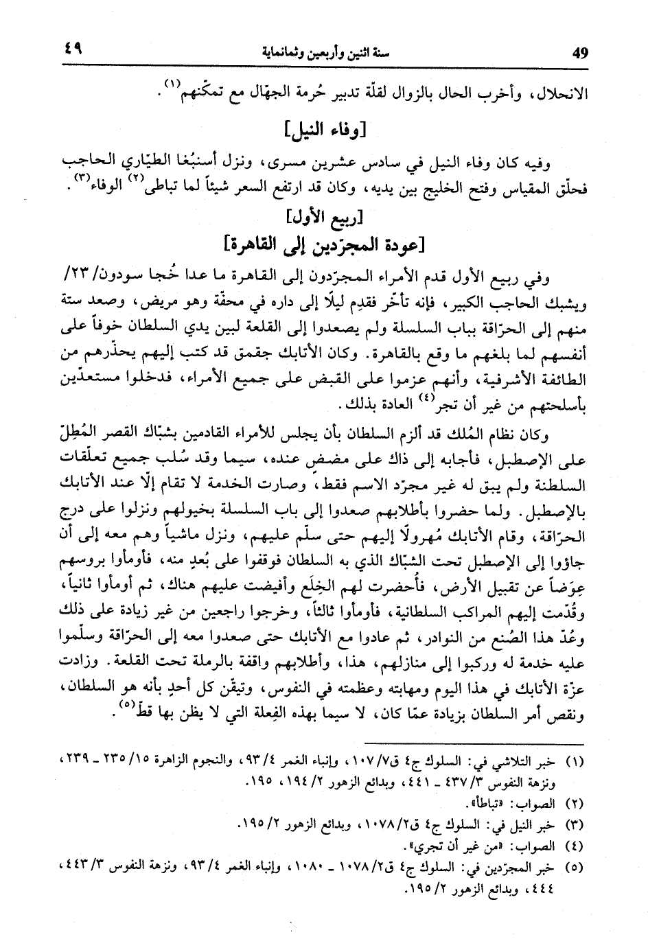 (¬5) خبر المجرّدين في: السلوك ج 4 ق 2/ 1078 - 1080، وإنباء الغمر 4/ 93، ونزهة النفوس 3/ 443، 444، وبدائع الزهور 2/ 195.