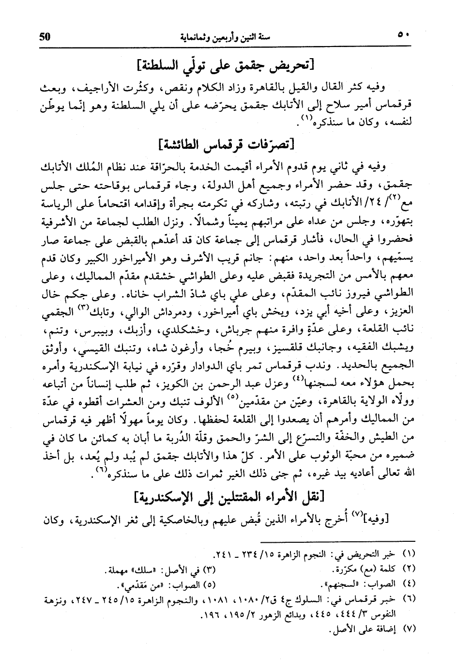 (¬6) خبر قرقماس في: السلوك ج 4 ق 2/ 1080، 1081، والنجوم الزاهرة 15/ 245 - 247، ونزهة النفوس 3/ 444، 445، وبدائع الزهور 2/ 195، 196.