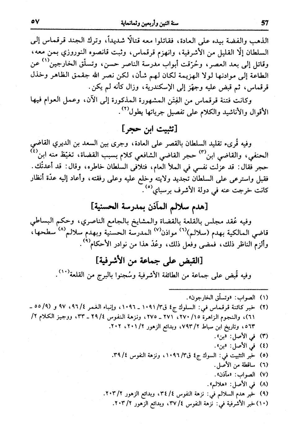 (¬10) خبر الأشرفية في: نزهة النفوس 4/ 37، وبدائع الزهور 2/ 203.