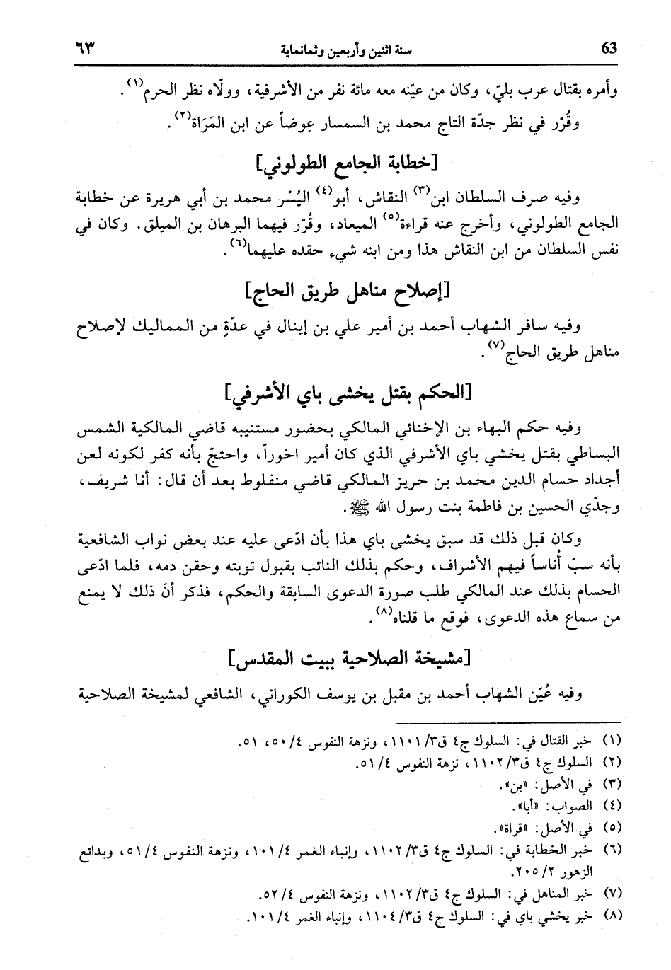 (¬8) خبر يخشي باي في: السلوك ج 4 ق 3/ 1104، وإنباء الغمر 4/ 101.