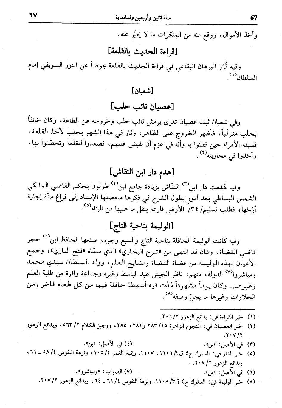 (¬5) خبر الدار في: السلوك ج 4 ق 3/ 1106، 1107. وإنباء الغمر 4/ 105، ونزهة النفوس 4/ 58 - 61، وبدائع الزهور 2/ 207.