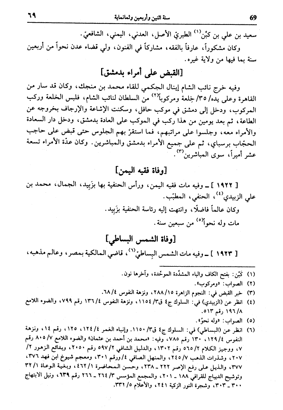 (¬4) انظر عن (الزبيدي) في: السلوك ج 4 ق 3/ 1154، ونزهة النفوس 4/ 136 رقم 799، والضوء اللامع 8/ 196 رقم 513.