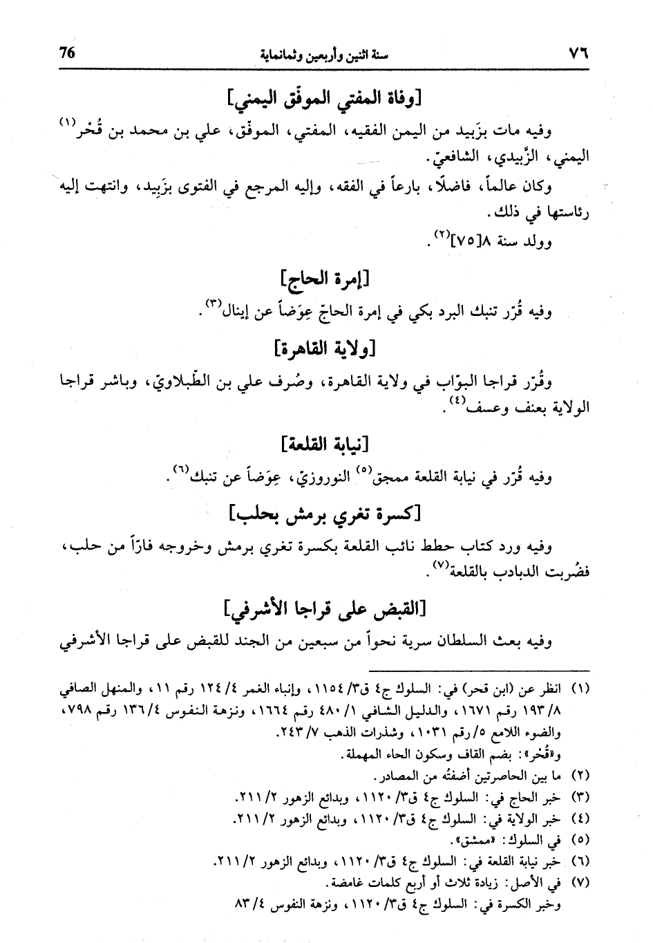 (¬4) خبر الولاية في: السلوك ج 4 ق 3/ 1120، وبدائع الزهور 2/ 211.