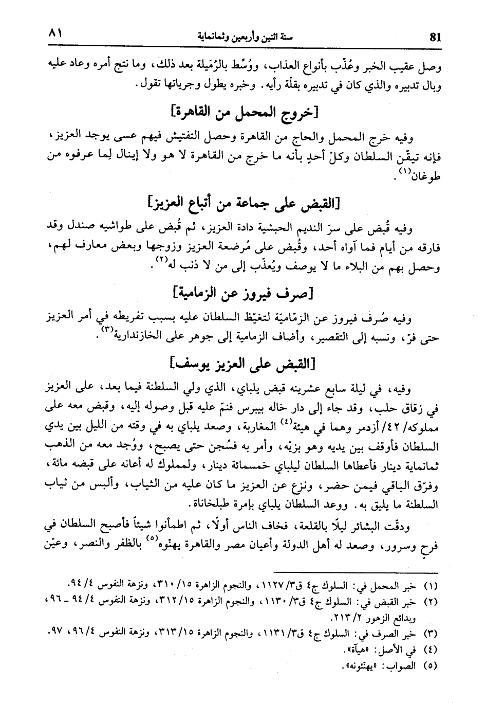 (¬1) خبر المحمل في: السلوك ج 4 ق 3/ 1127، والنجوم الزاهرة 15/ 310، ونزهة النفوس 4/ 94.