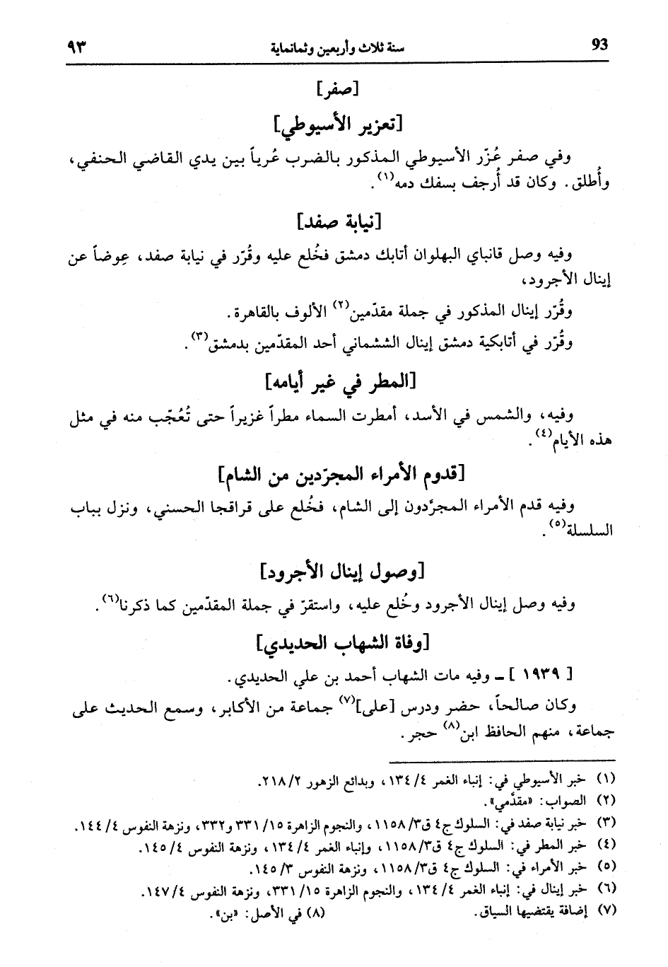(¬3) خبر نيابة صفد في: السلوك ج 4 ق 3/ 1158، والنجوم الزاهرة 15/ 331 و 332، ونزهة النفوس 4/ 144.