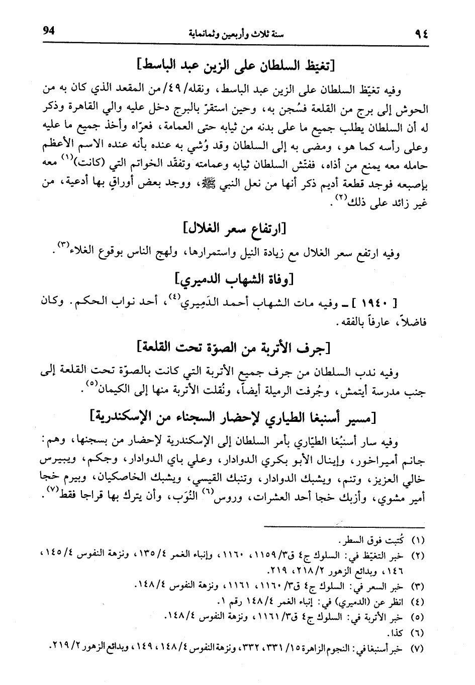 (¬7) خبر أسنبغا في: النجوم الزاهرة 15/ 331، 332، ونزهة النفوس 4/ 148، 149، وبدائع الزهور 2/ 219.