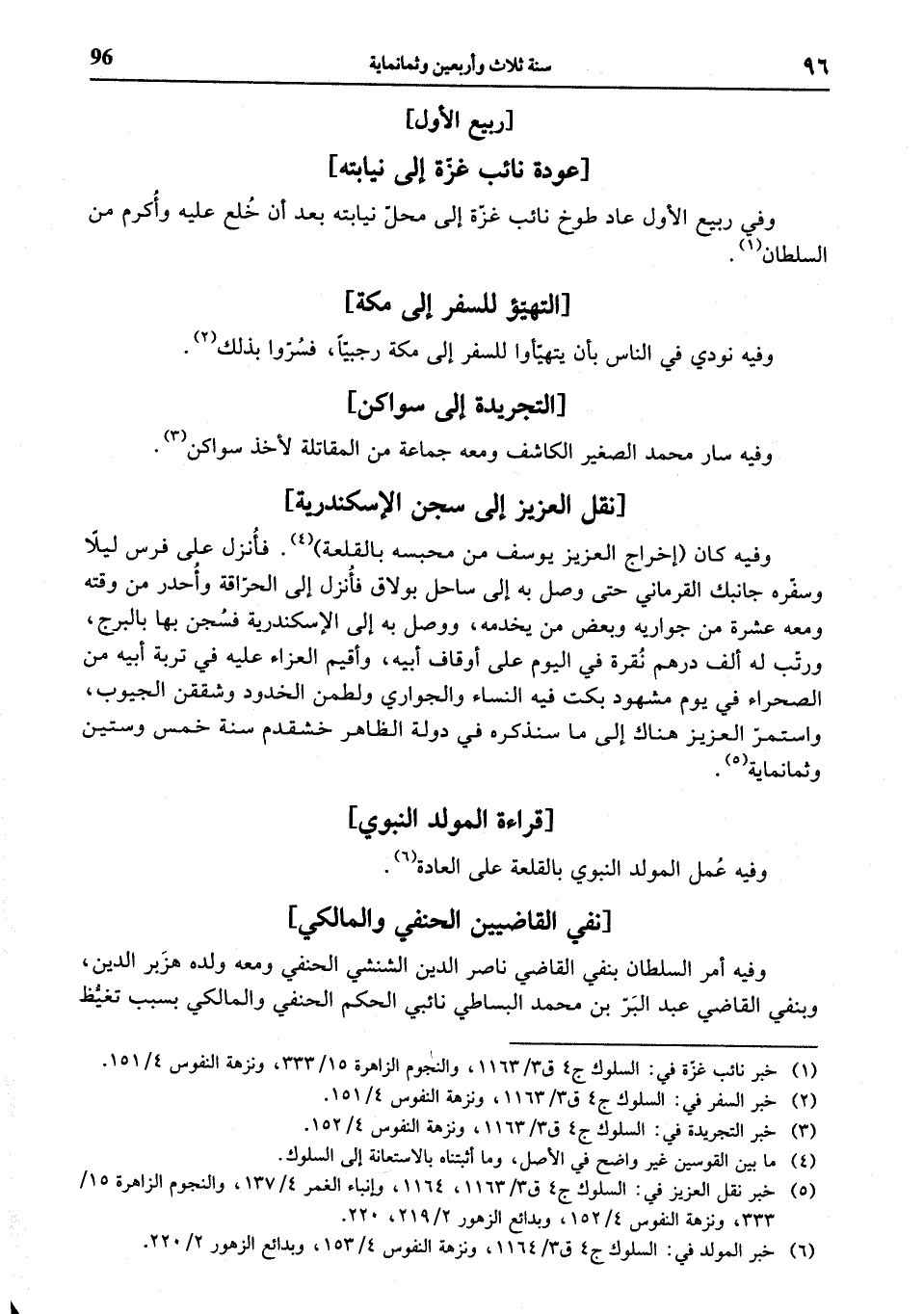 (¬6) خبر المولد في: السلوك ج 4 ق 3/ 1164، ونزهة النفوس 4/ 153، وبدائع الزهور 2/ 220.