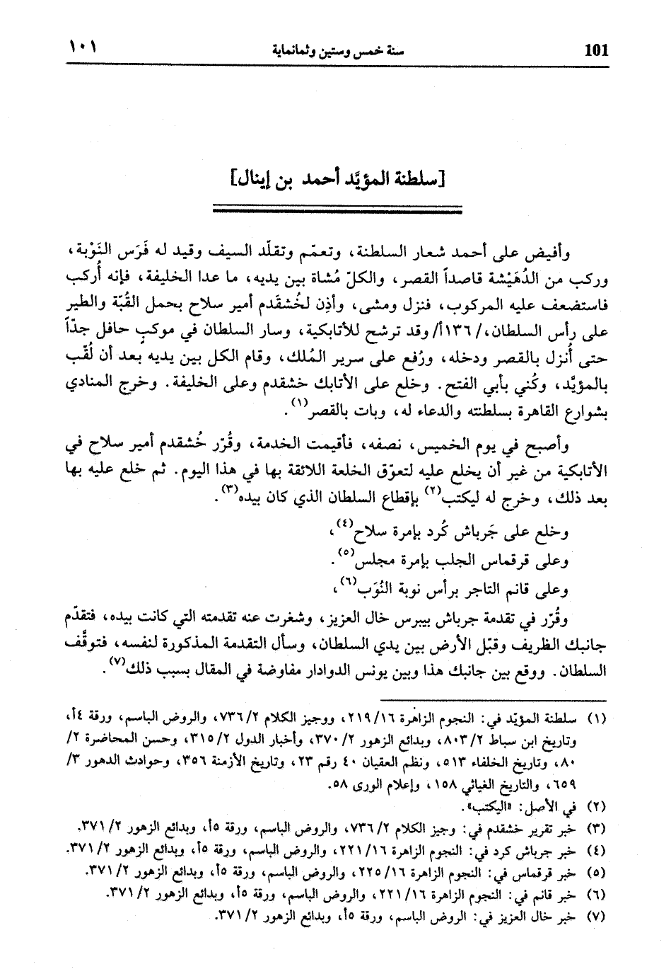 (¬5) خبر قرقماس في: النجوم الزاهرة 16/ 225، والروض الباسم، ورقة 5 أ، وبدائع الزهور 2/ 371.