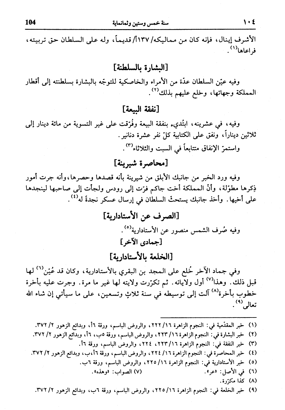 (¬5) خبر الأستادارية في: النجوم الزاهرة 16/ 225، والروض الباسم، ورقة 6 ب.
