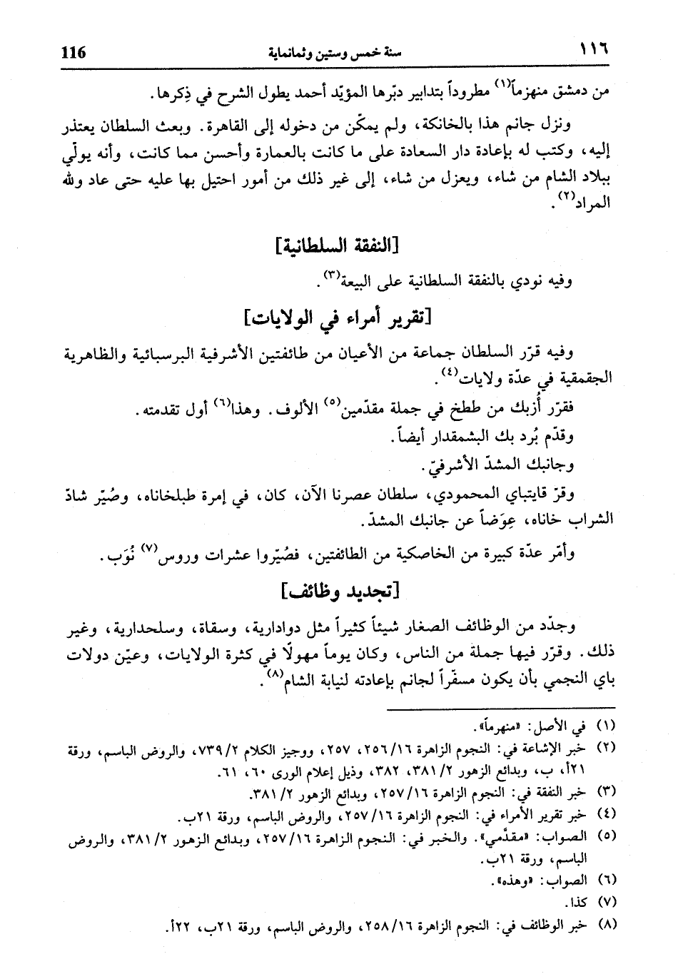 (¬8) خبر الوظائف في: النجوم الزاهرة 16/ 258، والروض الباسم، ورقة 21 ب، 22 أ.