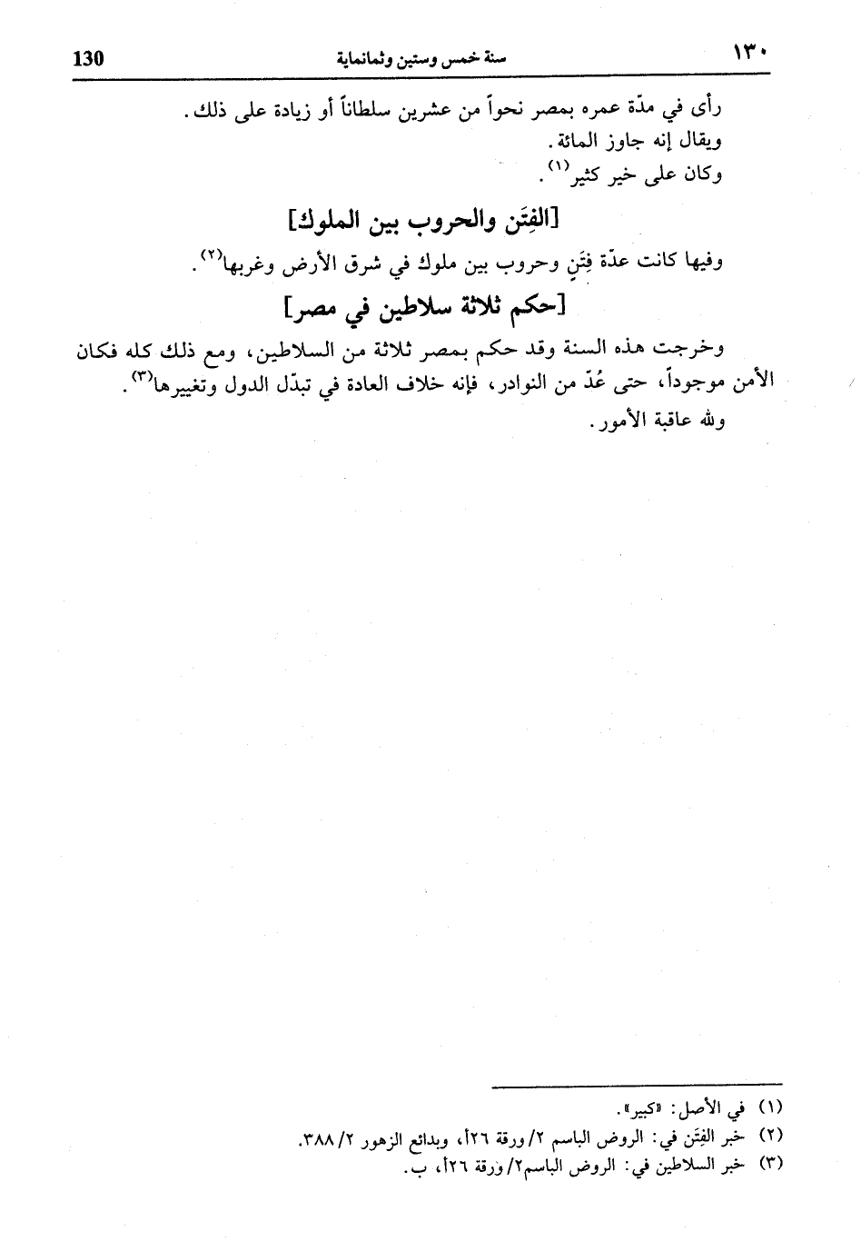 (¬2) خبر الفتن في: الروض الباسم 2 / ورقة 26 أ، وبدائع الزهور 2/ 388.