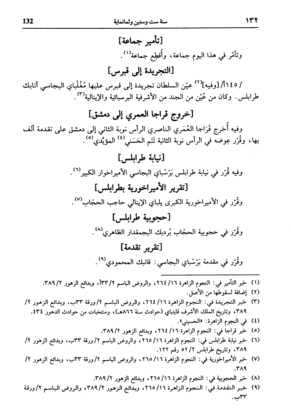 (¬3) خبر التجريدة في: النجوم الزاهرة 16/ 264، والروض الباسم 2 / ورقة 33 ب، وبدائع الزهور 2/ 389، وتاريخ الملك الأشرف قايتباي (حوادث سنة 866 هـ)، ومنتخبات من حوادث الدهور 434.
