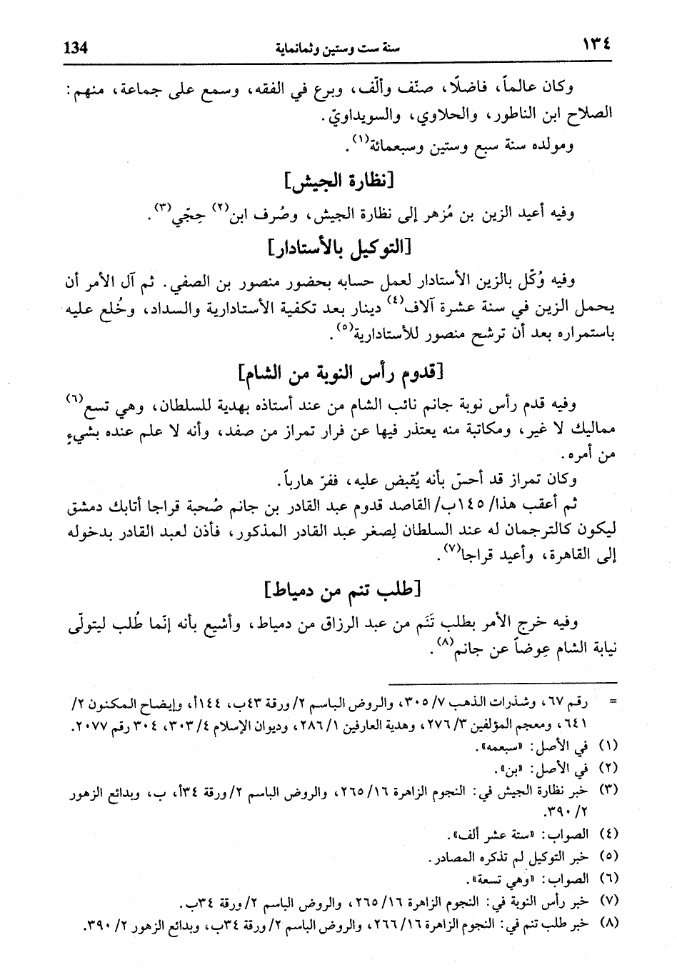 (¬3) خبر نظارة الجيش في: النجوم الزاهرة 16/ 265، والروض الباسم 2 / ورقة 34 أ، ب، وبدائع الزهور 2/ 390.