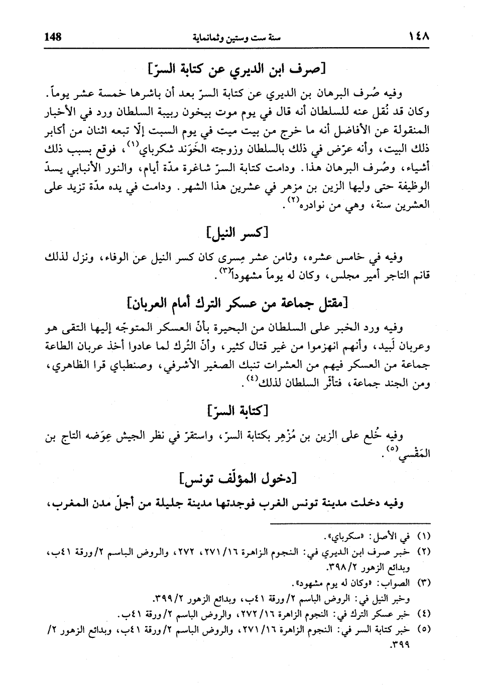 (¬5) خبر كتابة السر في: النجوم الزاهرة 16/ 271، والروض الباسم 2 / ورقة 41 ب، وبدائع الزهور 2/ 399.
