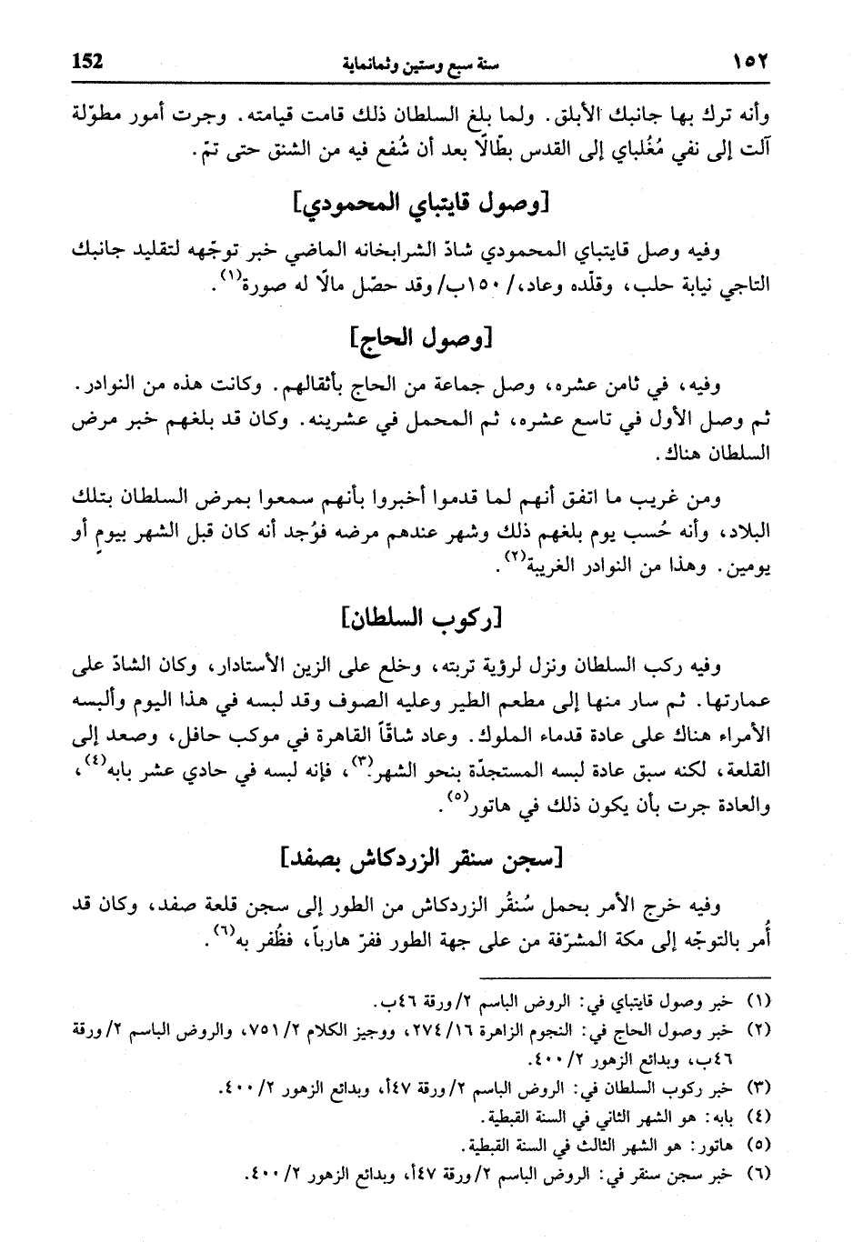 (¬2) خبر وصول الحاج في: النجوم الزاهرة 16/ 274، ووجيز الكلام 2/ 751، والروض الباسم 2 / ورقة 46 ب، وبدائع الزهور 2/ 400.
