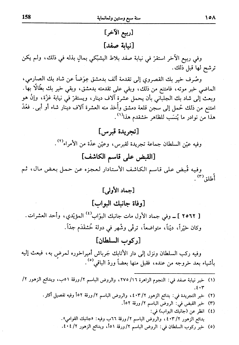 (¬4) انظر عن (جانبك البواب) في: بدائع الزهور 2/ 403، والروض الباسم 2 / ورقة 66 ب وفيه: «جانبك القوامي».