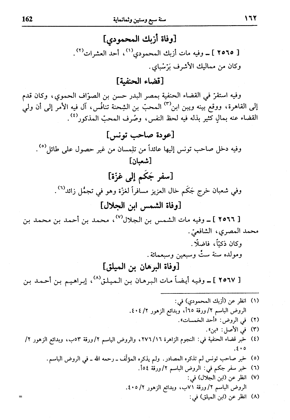 (¬4) خبر قضاء الحنفية في: النجوم الزاهرة 16/ 276، والروض الباسم 2 / ورقة 53 ب، وبدائع الزهور 2/ 405.