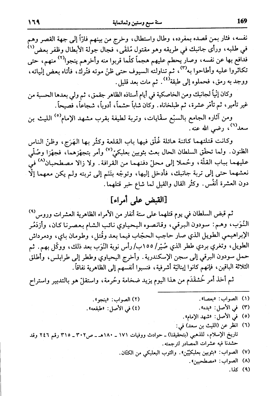 (¬6) انظر عن (الليث بن سعد) في: تاريخ الإسلام، للذهبي (بتحقيقنا) - حوادث ووفيات 171 - 180 هـ - ص 302 - 315 رقم 246 وقد حشدنا فيه عشرات المصادر لترجمته.