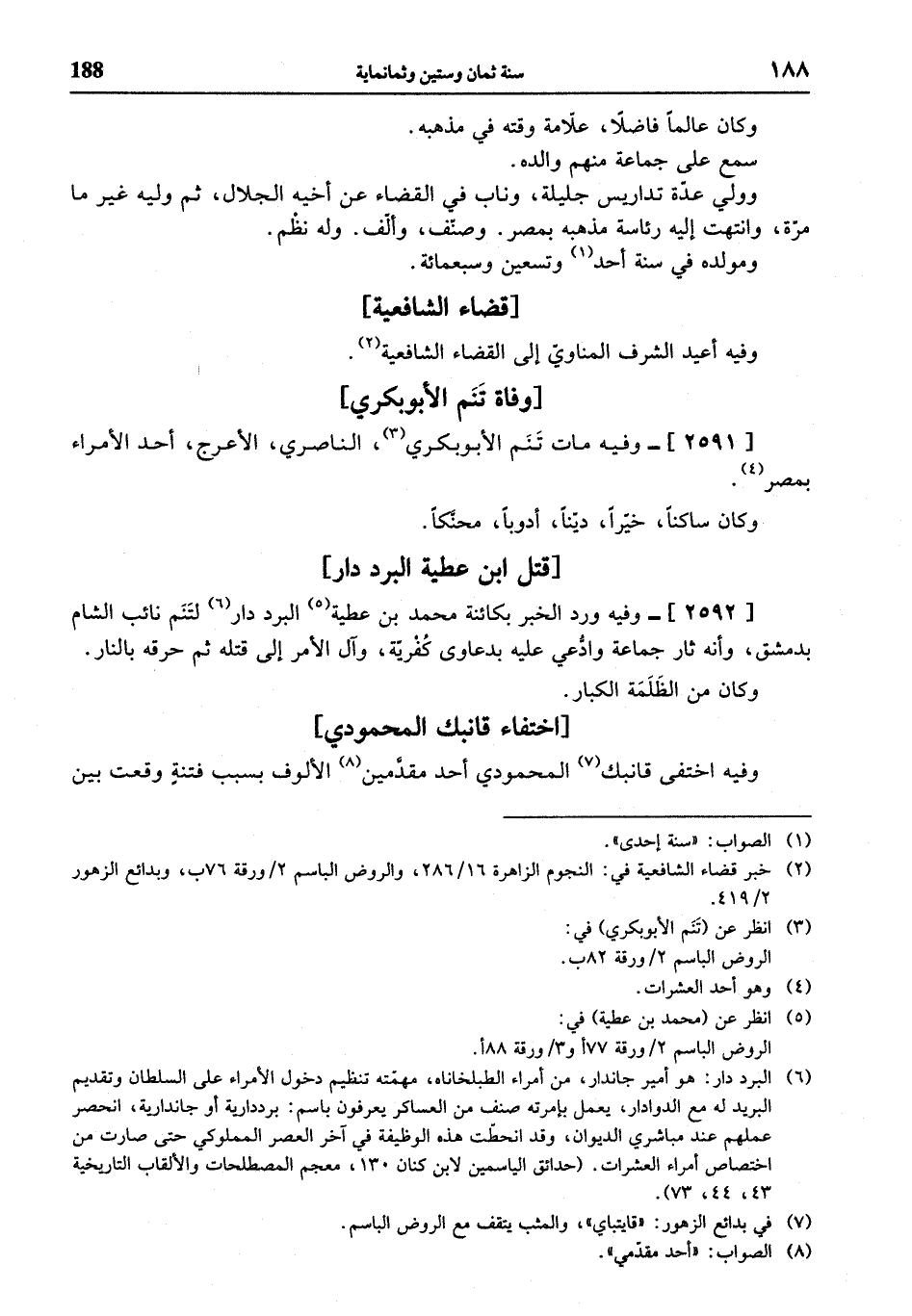 (¬2) خبر قضاء الشافعية في: النجوم الزاهرة 16/ 286، والروض الباسم 2 / ورقة 76 ب، وبدائع الزهور 2/ 419.