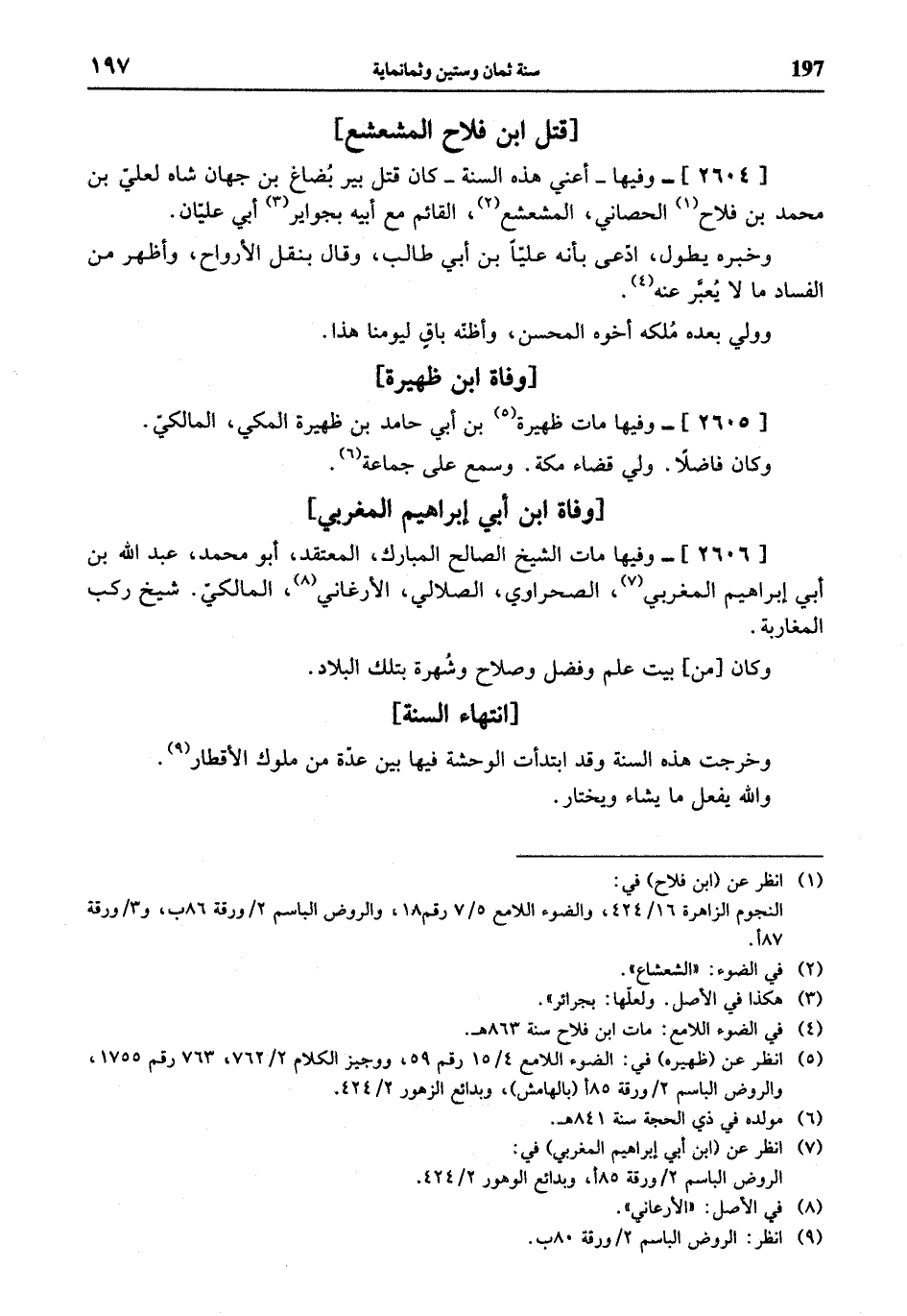 (¬1) انظر عن (ابن فلاح) في: النجوم الزاهرة 16/ 424، والضوء اللامع 5/ 7 رقم 18، والروض الباسم 2 / ورقة 86 ب، و 3 / ورقة 87 أ.