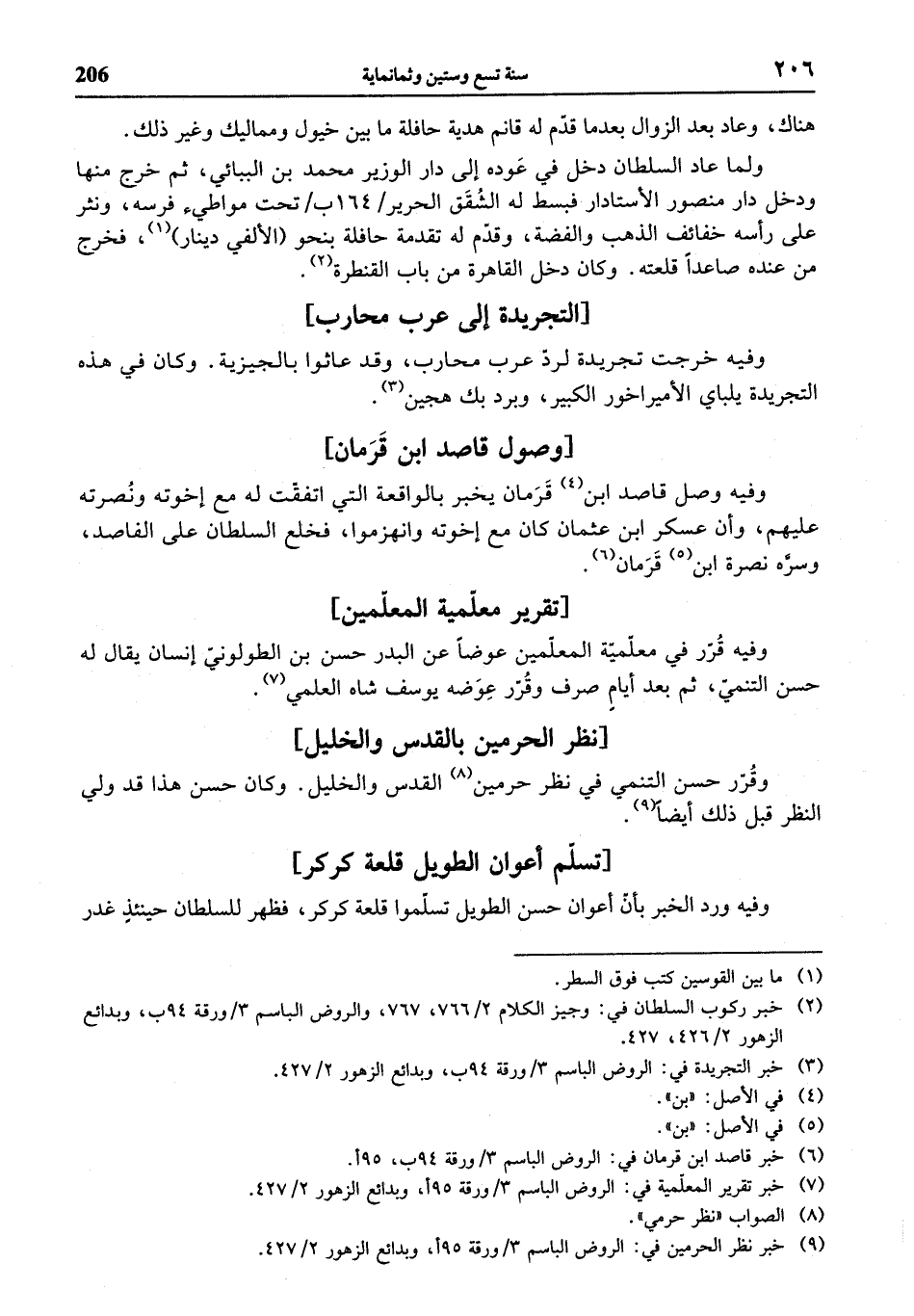 (¬6) خبر قاصد ابن قرمان في: الروض الباسم 3 / ورقة 94 ب، 95 أ.