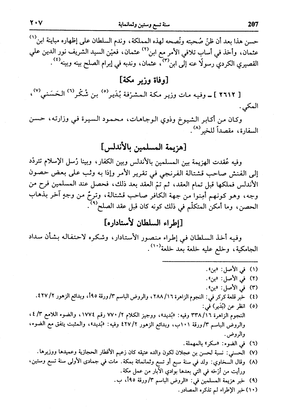 (¬5) انظر عن (بدير) في: النجوم الزاهرة 16/ 338 وفيه: «بديد»، ووجيز الكلام 2/ 770 رقم 1774، والضوء اللامع 3/ 4، والروض الباسم 3 / ورقة 101 ب، وبدائع الزهور 2/ 427 وفيه: «بديد»، والمثبت يتفق مع الضوء، والروض.