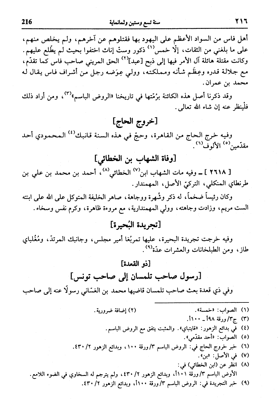 (¬8) انظر عن (ابن الخطائي) في: الأوض الباسم 3 / ورقة 101 أ، وبدائع الزهور 2/ 430، ولم يترجم له السخاوي في الضوء اللامع.
