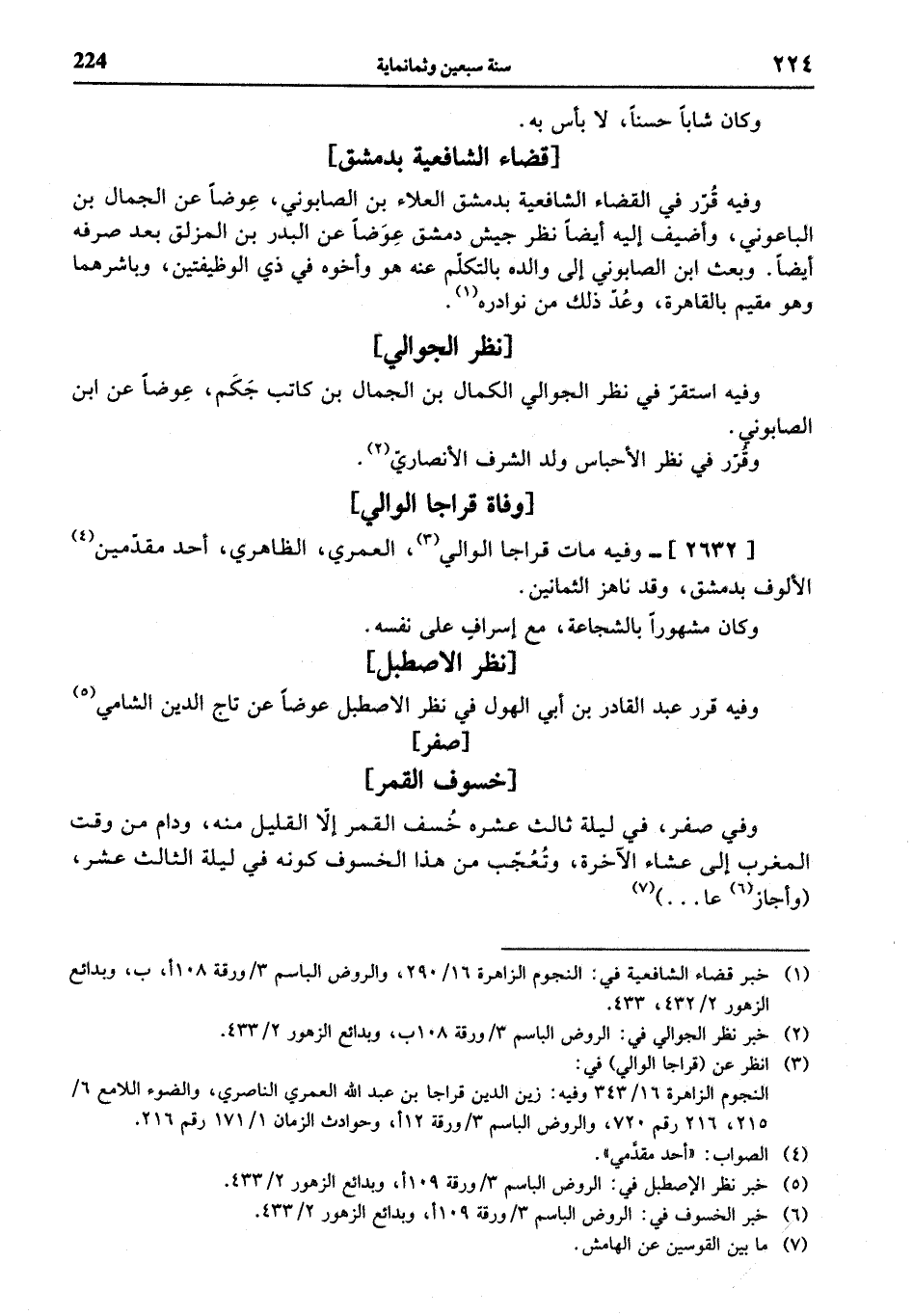 (¬6) خبر الخسوف في: الروض الباسم 3 / ورقة 109 أ، وبدائع الزهور 2/ 433.