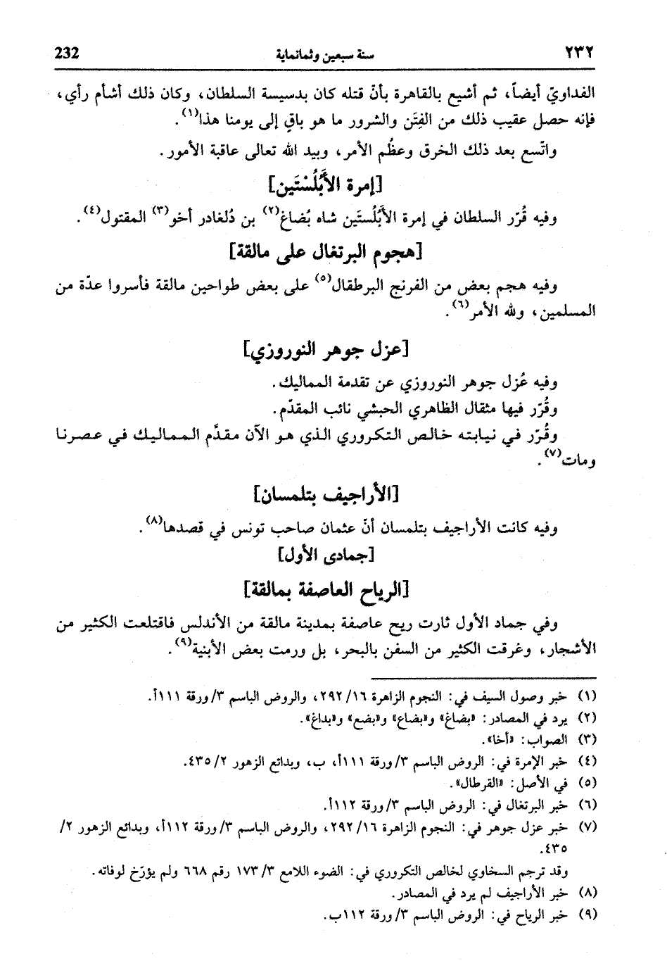 (¬7) خبر عزل جوهر في: النجوم الزاهرة 16/ 292، والروض الباسم 3 / ورقة 112 أ، وبدائع الزهور 2/ 435. وقد ترجم السخاوي لخالص التكروري في: الضوء اللامع 3/ 173 رقم 668 ولم يؤرّخ لوفاته.
