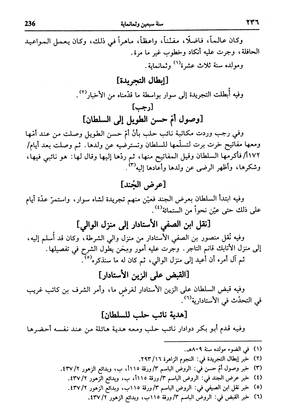 (¬5) خبر نقل ابن الصيفي في: الروض الباسم 3 / ورقة 115 ب، وبدائع الزهور 2/ 437.