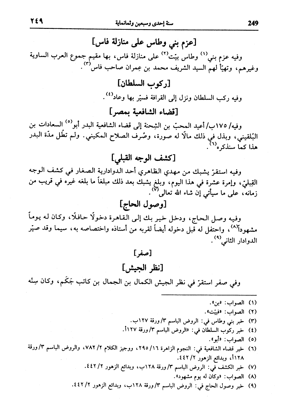 (¬9) خبر وصول الحاج في: الروض الباسم 3 / ورقة 128 ب، وبدائع الزهور 2/ 442.