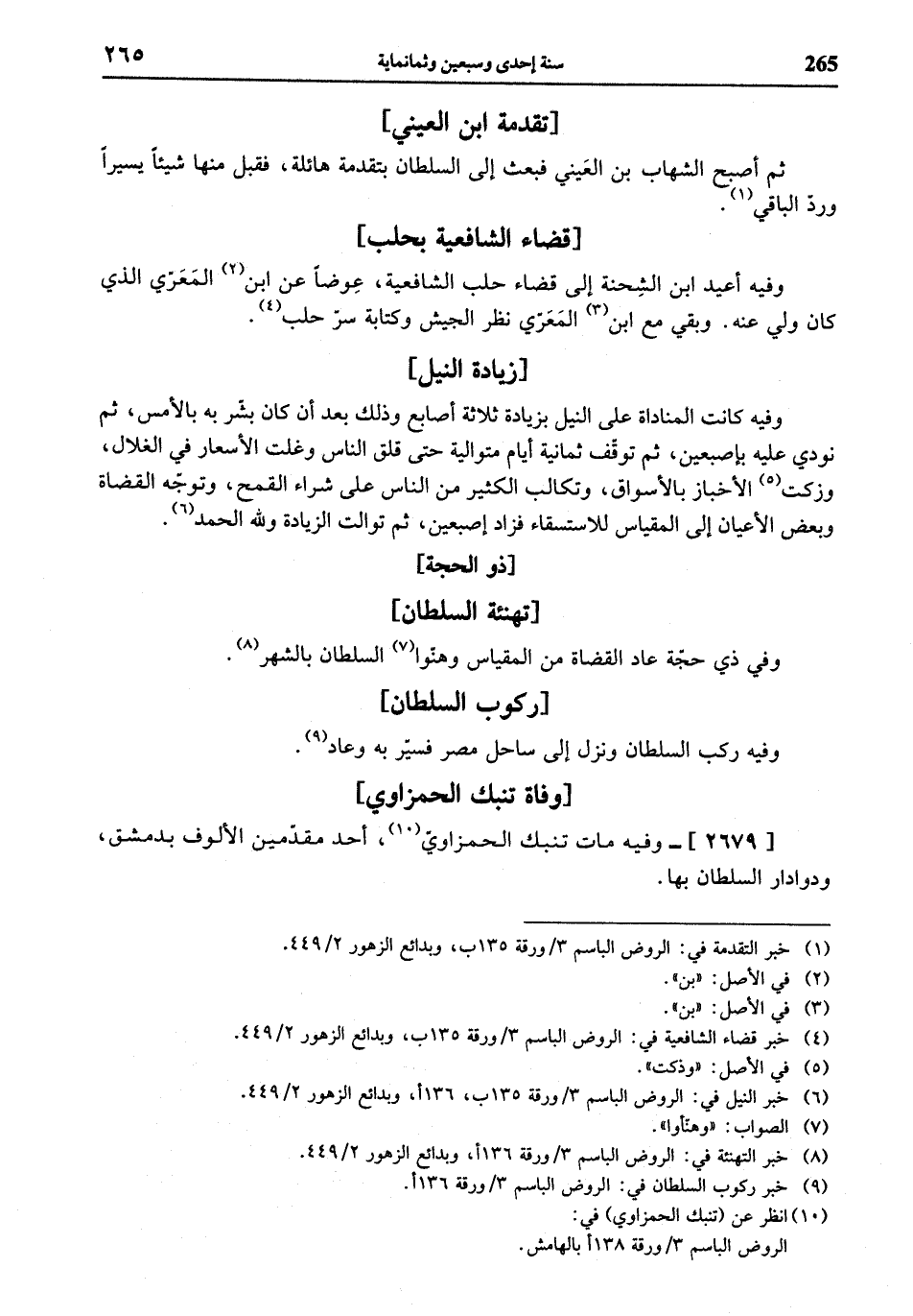 (¬6) خبر النيل في: الروض الباسم 3 / ورقة 135 ب، 136 أ، وبدائع الزهور 2/ 449.