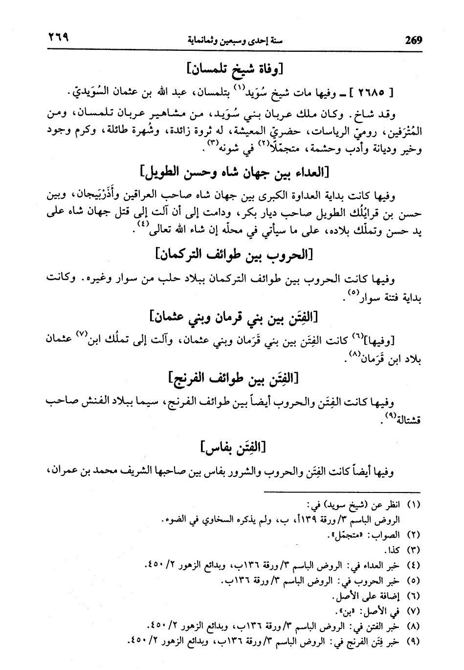 (¬9) خبر فتن الفرنج في: الروض الباسم 3 / ورقة 136 ب، وبدائع الزهور 2/ 450.
