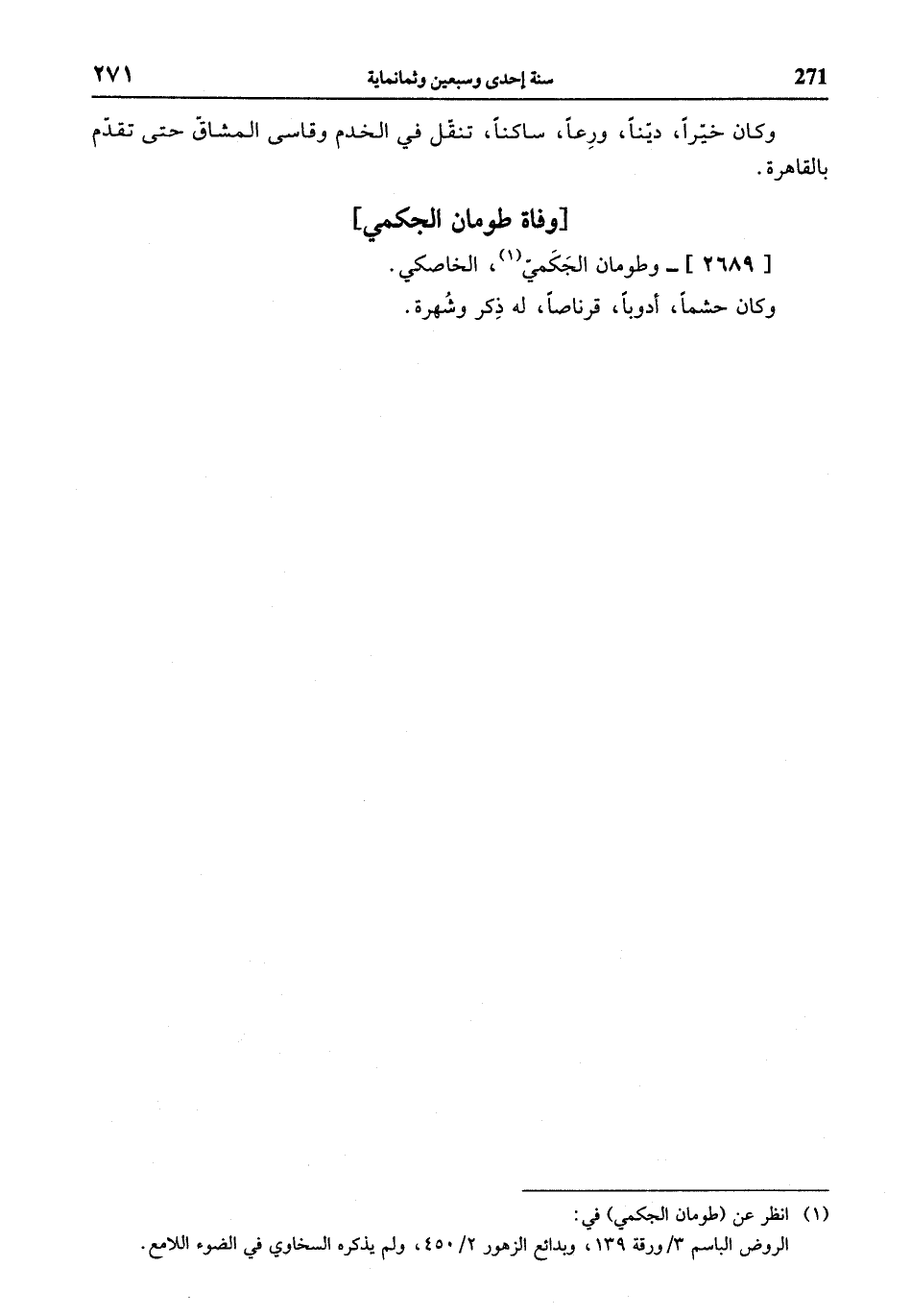 (¬1) انظر عن (طومان الجكمي) في: الروض الباسم 3 / ورقة 139، وبدائع الزهور 2/ 450، ولم يذكره السخاوي في الضوء اللامع.