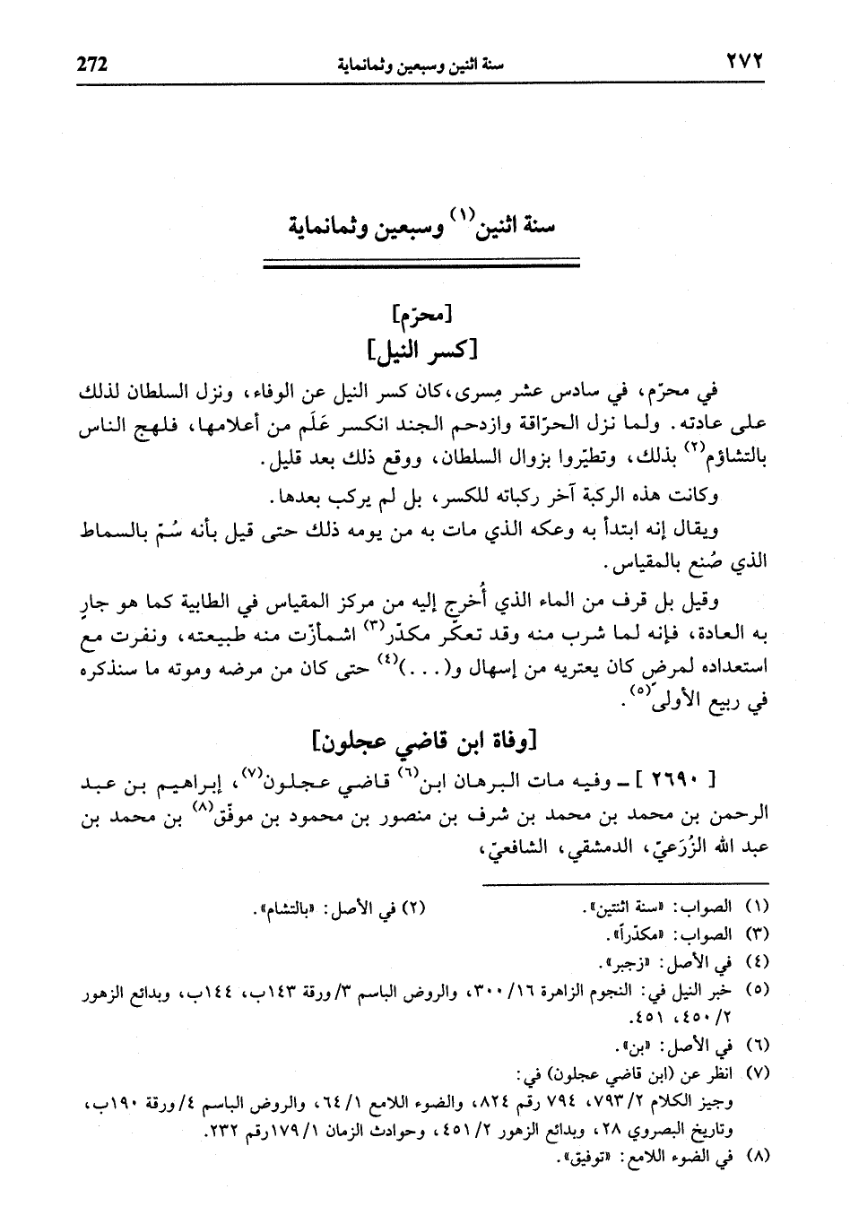 (¬5) خبر النيل في: النجوم الزاهرة 16/ 300، والروض الباسم 3 / ورقة 143 ب، 144 ب، وبدائع الزهور 2/ 450، 451.