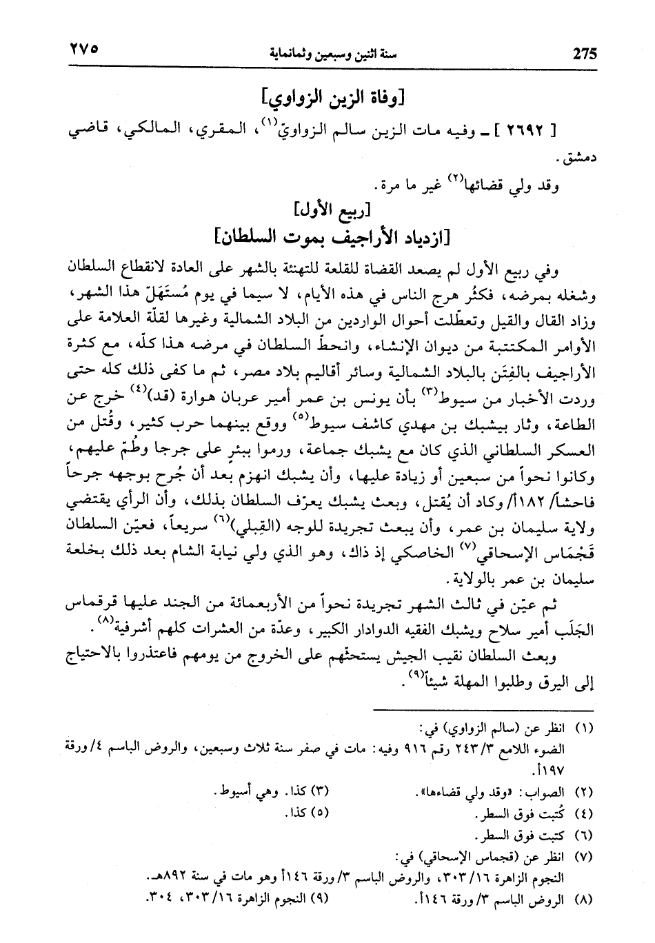 (¬7) انظر عن (قجماس الإسحاقي) في: النجوم الزاهرة 16/ 303، والروض الباسم 3 / ورقة 146 أوهو مات في سنة 892 هـ.