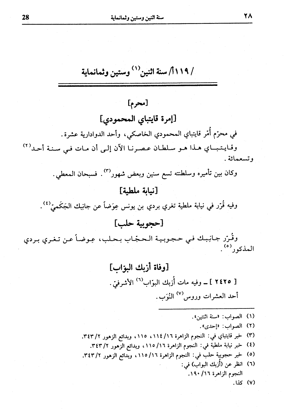 (¬5) خبر حجوبية حلب في: النجوم الزاهرة 16/ 115، وبدائع الزهور 2/ 343.