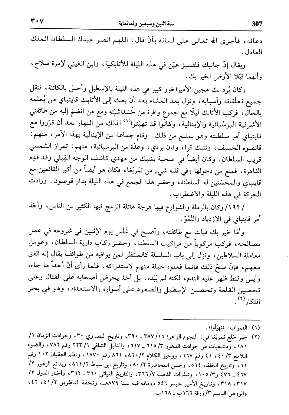 / 192 / وكان بالرملة والشوارع فيها هرجة هائلة انزعج فيها الكثير من الناس، وأخذ أمر قايتباي في الازدياد والنموّ.