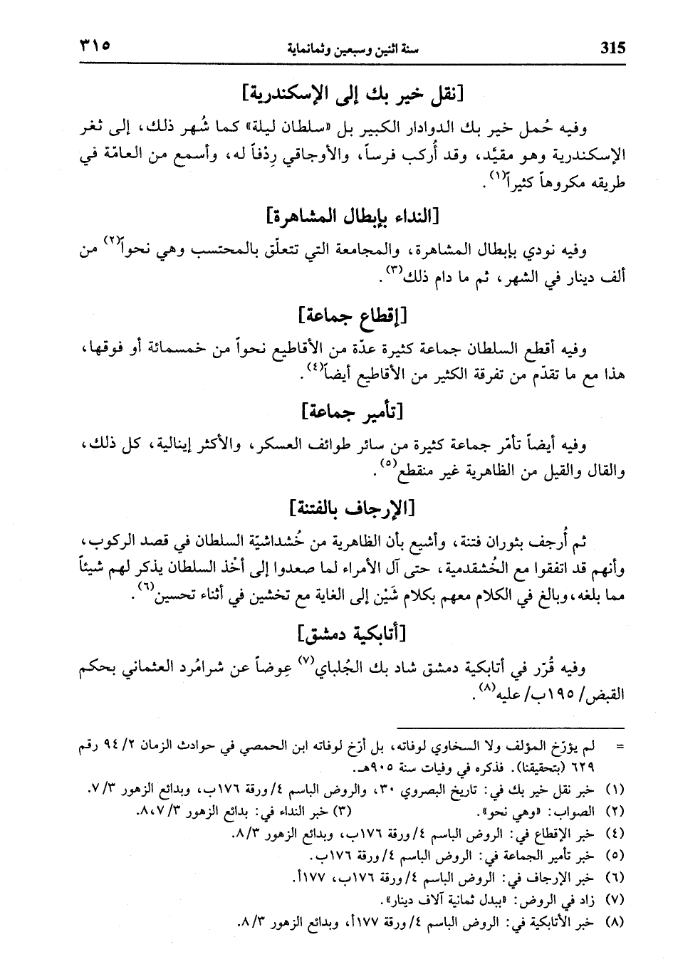 (¬1) خبر نقل خير بك في: تاريخ البصروي 30، والروض الباسم 4 / ورقة 176 ب، وبدائع الزهور 3/ 7.