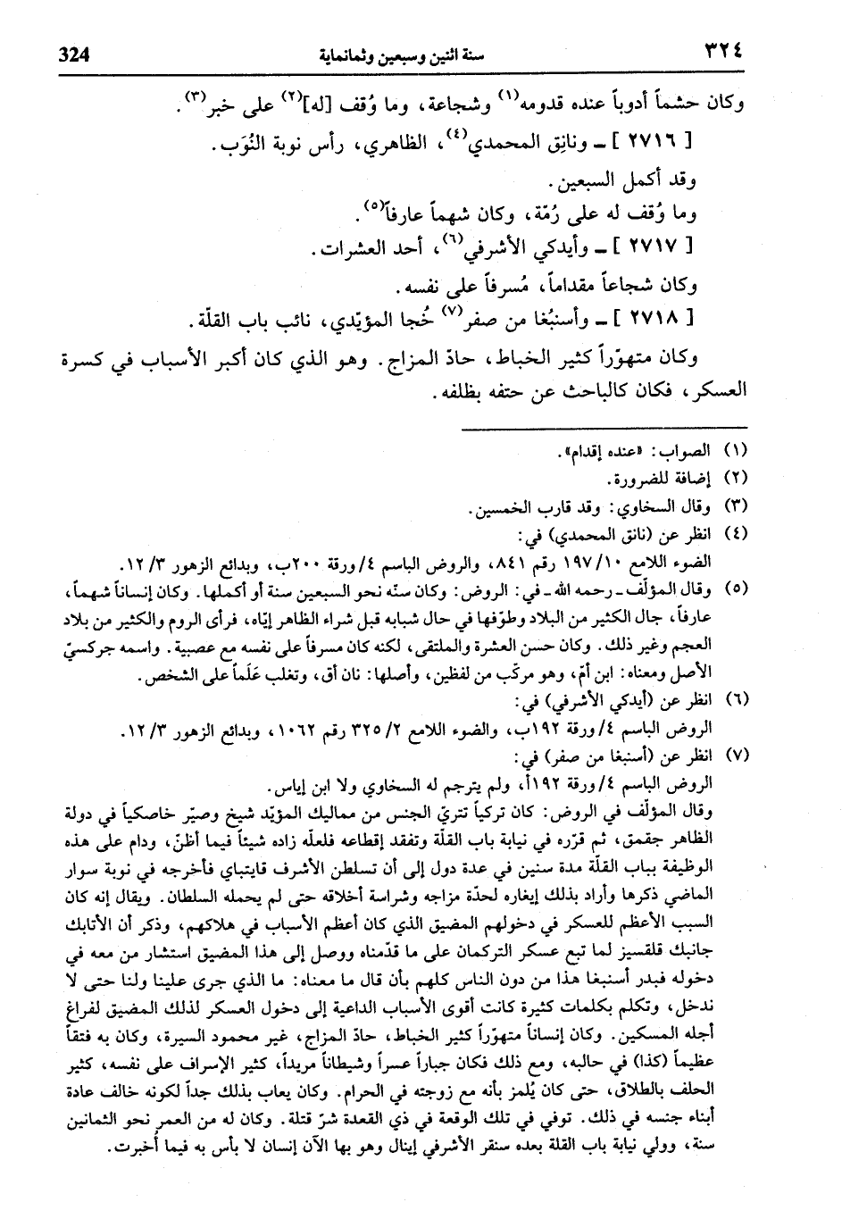 (¬4) انظر عن (نانق المحمدي) في: الضوء اللامع 10/ 197 رقم 841، والروض الباسم 4 / ورقة 200 ب، وبدائع الزهور 3/ 12.
