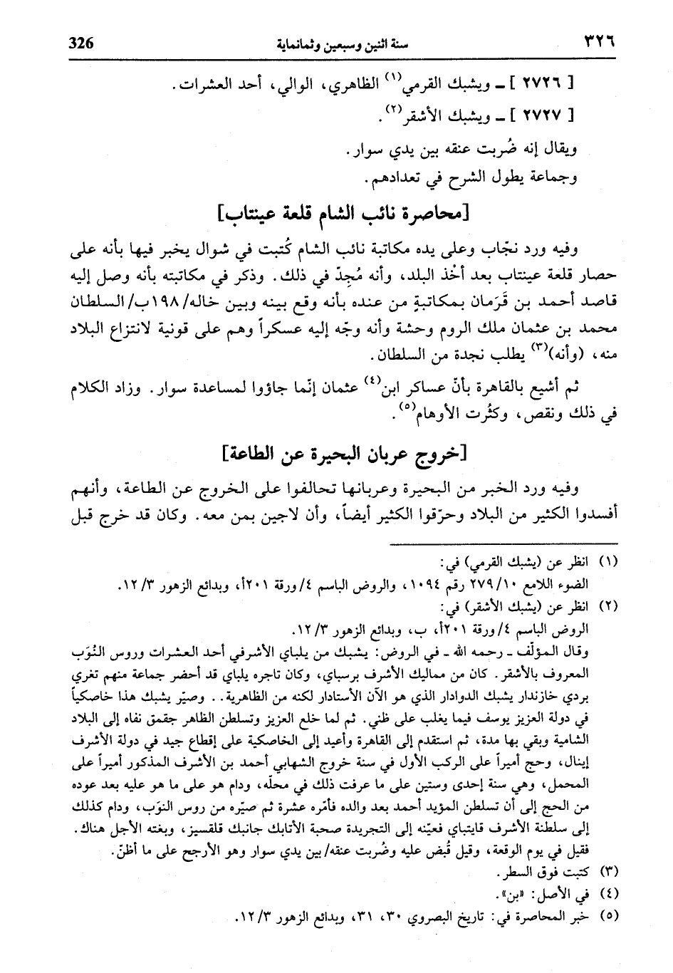 (¬5) خبر المحاصرة في: تاريخ البصروي 30، 31، وبدائع الزهور 3/ 12.