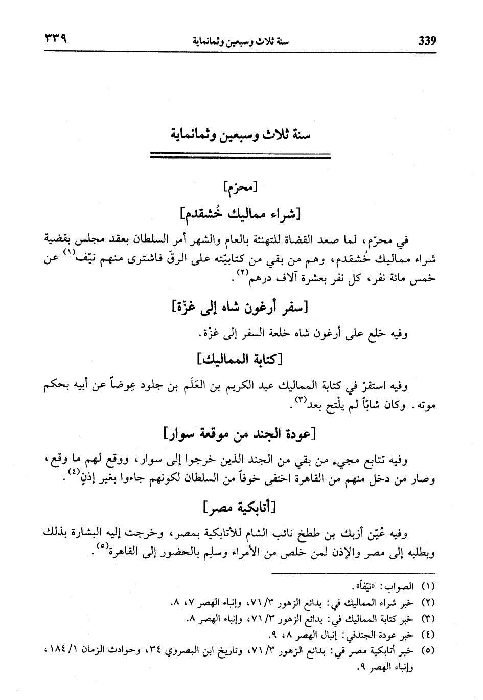 (¬2) خبر شراء المماليك في: بدائع الزهور 3/ 71، وإنباء الهصر 7، 8.