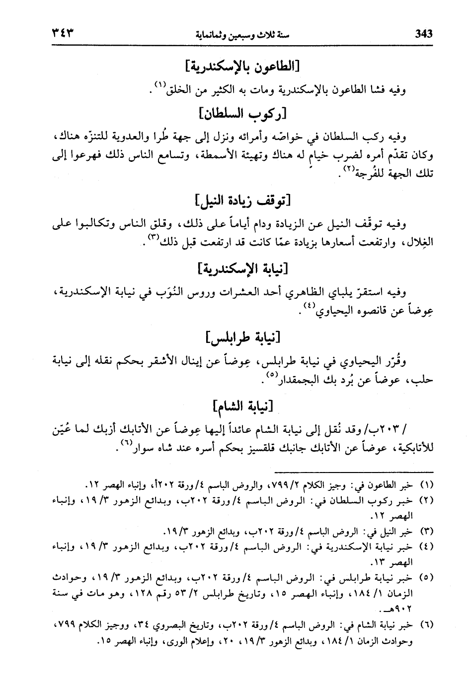 (¬4) خبر نيابة الإسكندرية في: الروض الباسم 4 / ورقة 202 ب، وبدائع الزهور 3/ 19، وإنباء الهصر 13.