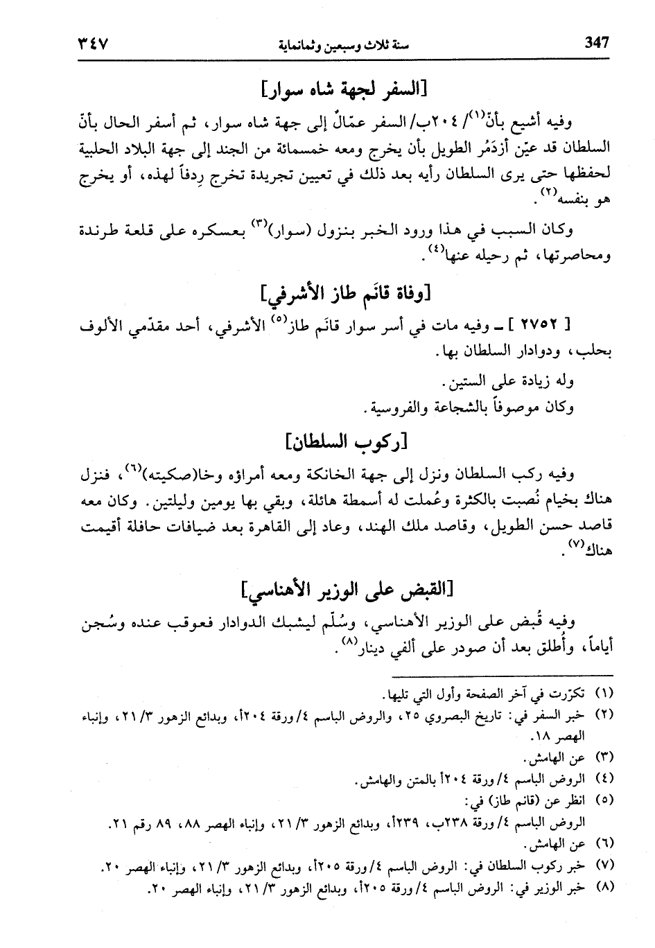 (¬7) خبر ركوب السلطان في: الروض الباسم 4 / ورقة 205 أ، وبدائع الزهور 3/ 21، وإنباء الهصر 20.